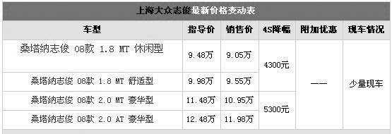 日前車(chē)天下汽車(chē)網(wǎng)記者獲悉,桑塔納志俊全系車(chē)型最高有5300元的讓利,同時(shí)當(dāng)天定車(chē)還可獲2500元裝潢禮包、油卡以及GPS抽獎(jiǎng)等禮品。感興趣的朋友可以到當(dāng)?shù)亟?jīng)銷(xiāo)商處了解實(shí)際情況。