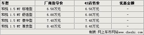 據(jù)江淮汽車4S店銷售人員介紹,江淮和悅?cè)龓I車目前只有展車,批量現(xiàn)車最快也需要一個(gè)月左右才能抵達(dá)。另外,由于現(xiàn)在沒有現(xiàn)車銷售,預(yù)訂江淮和悅?cè)龓I車并沒有任何優(yōu)惠政策,去年預(yù)訂優(yōu)惠1000元的政策也已經(jīng)取消。