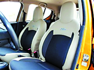 新奧拓采用了全新的中控臺設(shè)計(jì)元素,雙色內(nèi)飾使整個內(nèi)部空間層次分明。儀表盤的樣式很別致,在傳統(tǒng)的儀表盤上只有一個大大的圓形速度表盤,轉(zhuǎn)速表被單獨(dú)“提”了出來,布置在儀表臺的左上方。儀表臺、前門板以及座椅都體現(xiàn)了雙色風(fēng)格,加上濃郁的設(shè)計(jì)元素,整個內(nèi)飾空間給人一種清新明快的感覺。運(yùn)用三種不同面料縫制的座椅頗具運(yùn)動感,造型設(shè)計(jì)比較符合人體工程學(xué),頭枕和椅背采用一體式設(shè)計(jì),能貼合乘坐者的頭、背及腰部曲線以提供良好的駕乘感受。