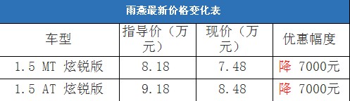近日,編輯從北京地區(qū)綜合經(jīng)銷商處了解到,近期雨燕的現(xiàn)車比較充足,顏色也比較齊全,基本可以滿足消費(fèi)者的需要;目前購車全系有7000元的現(xiàn)金優(yōu)惠。據(jù)經(jīng)銷商透露,消費(fèi)者要想以這個價格提車,需要在店內(nèi)做一條龍服務(wù),其中車輛四項基本保險可以打9折(約合3400-3600元左右)。以下是雨燕最新價格變化表: