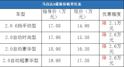 近日,編輯從北京地區(qū)某一汽馬自達(dá)4S經(jīng)銷商處了解到,馬自達(dá)6的現(xiàn)車充足,但是全系只能優(yōu)惠3000元,更多的優(yōu)惠需要消費(fèi)者到店詳談才能確定。相比之下,北京地區(qū)綜合經(jīng)銷商處的馬自達(dá)6自動擋車型的現(xiàn)車比較充足,購車可以優(yōu)惠2.6萬元,手動擋的現(xiàn)車較少,可以優(yōu)惠2.1萬元,降價幅度與去年末相比有了比較可觀的提升。不過據(jù)經(jīng)銷商透露,消費(fèi)者要想以這個價格提車,需要在店內(nèi)做購車一條龍服務(wù),其中車輛四項基本保險可以打8.5折(約合4800-5300元左右)。以下是馬自達(dá)6最新價格變化表: