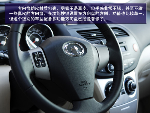 方向盤覆蓋仿皮材質(zhì),盡管不是真皮,但手感非常不錯,不夸張的說甚至不輸一些真皮的方向盤。多功能按鍵只設置在方向盤的左側(cè),功能也比較單一。但這個級別的車型配備多功能方向盤的有幾個,這樣看來凌傲真的是夠厚道了。