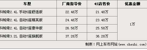據(jù)雪弗蘭科經(jīng)銷商銷售人員介紹,消費者于近期購買雪佛蘭-科帕奇任意一款車型,可以得到1萬元的現(xiàn)金優(yōu)惠,2.4L排量高配的七座手自一體豪華版經(jīng)優(yōu)惠后售價為25.58萬元,而低一級的2.4L手動五座舒適版經(jīng)優(yōu)惠后售價降為21.48萬元。頂級的3.2L自動7座旗艦版經(jīng)優(yōu)惠后,售價從37.28萬元下降到了36.28萬元。