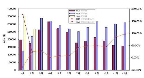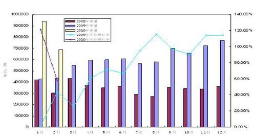 2008-2010年1.6升及以下月度乘用車(chē)銷(xiāo)量及變化情況