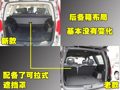 車(chē)尾箱的布局沒(méi)有變化,只是將原先折疊式的遮擋層換成了伸縮式帶拉手的形式,使用起來(lái)既美觀又方便。