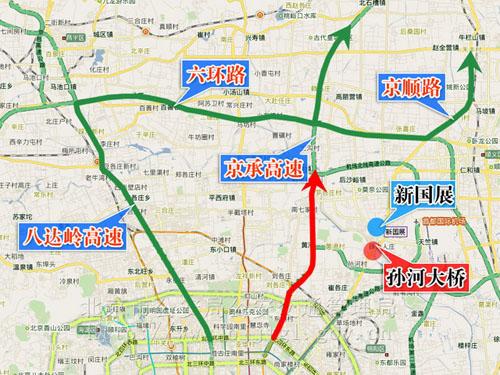 六、由于車展期間京承高速路車流量大,京密路孫河大橋路面施工,易造成交通擁堵。為避免過境車輛和前往懷柔、密云、平谷、承德等方向旅游車輛長時(shí)間滯留,可分別由下列道路繞行: