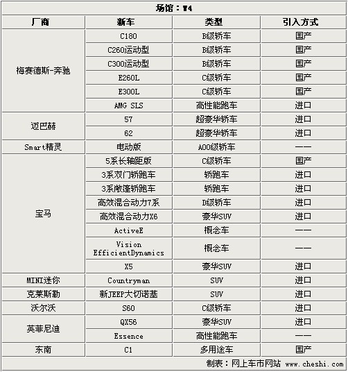 在2010北京國際車展即將開幕之際,我為您奉上W4場館詳細參展品牌及車型介紹,希望通過這篇詳細介紹,讓您在W4館內(nèi)找到自己喜歡的車型,并度過愉快的一天。這次共有9大品牌在W4場館內(nèi)進行參展,其實不乏業(yè)界一線品牌,譬如梅賽德斯奔馳集團、寶馬集團、克萊斯勒集團及沃爾沃等知名品牌。作為一線品牌,它們在亮相車型上也進行了仔細篩選,譬如國內(nèi)知名度較大的E級轎車、全新一代5系Li以及JEEP新大切諾基等車型,這些車型的亮相及發(fā)布,定會引起國內(nèi)消費者的廣泛關注。