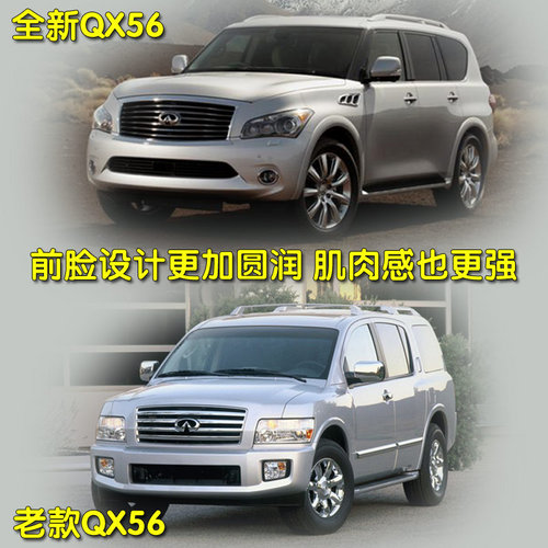 新款QX56外觀方面,厚實的引擎艙,具有力量感的鍍鉻進(jìn)氣格柵和翼子板透氣孔都在暗示著這款新車強(qiáng)大的動力系統(tǒng)。從整體設(shè)計上講,只有林肯領(lǐng)航員能有如此的氣勢。但從側(cè)身上來看,新QX56較老款更為圓潤,體現(xiàn)出了英菲尼迪一貫的優(yōu)雅感。