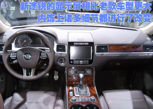 在內(nèi)飾方面新途銳一改沉穩(wěn)的設(shè)計(jì)風(fēng)格,三輻式多功能方向盤(pán)替代了源自輝騰的四輻式設(shè)計(jì)。類(lèi)似的多功能按鈕集成了影音系統(tǒng)、行車(chē)電腦、定速巡航、車(chē)載電話等操控設(shè)置,集中體現(xiàn)了新途銳的駕駛樂(lè)趣。