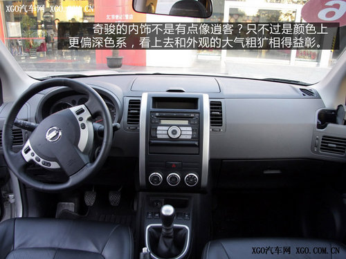 奇駿的內(nèi)飾設(shè)計與逍客有不少相似之處,只是為了迎合硬朗的外形,車內(nèi)使用了深色系的顏色搭配,并在細(xì)節(jié)設(shè)計上更多的選擇了方形,看上去更簡潔大氣。而且在用料做工上,也比CR-V要厚道一些。