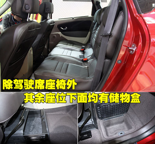 雷諾新風(fēng)景的后排空間比較充足,對于一般身材的乘員來說都能夠得到比較充足的腿部空間。另外座椅下方還配備了實(shí)用的儲(chǔ)物盒,使用簡單方便。座椅兩側(cè)的B柱上還設(shè)計(jì)了左右獨(dú)立自動(dòng)空調(diào),為消費(fèi)者提供了舒適的乘坐環(huán)境。