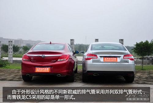 C5和新君威在外觀上的區(qū)別,就如同聊起法式浪漫的陶醉和美式運動的活潑歡快一樣。當把這兩輛車放在一起時,不用去看任何參數(shù)數(shù)據(jù),不用去想任何設計理念,你都能輕易的嗅出他們的不同。C5在造型上用了較大手筆的剪裁,被拉寬的尾部視覺,有沖擊力的前臉造型以及匍匐前進的那條強有力的腰線都在C5長前懸+短后懸的比例中體現(xiàn)出來。