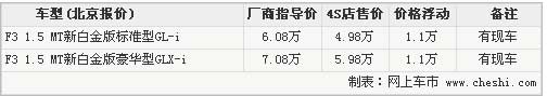 據(jù)比亞迪汽車4S店銷售人員介紹,比亞迪F3目前僅有標準版和豪華版兩款車型在售,兩款車型目前均有現(xiàn)車,顏色也比較齊全。到店購車可以享受1.1萬元的現(xiàn)金優(yōu)惠,標準版降價后跌破5萬,僅售4.98萬元。