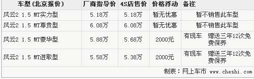 風云2兩廂共有4款車型,指導價為5.18萬-6.08萬。根據(jù)奇瑞4S店銷售人員介紹,目前店內銷售的車型只有進取型和豪華型兩款,現(xiàn)在購車即可享受2000元現(xiàn)金優(yōu)惠,此外4S店還贈送三年12次免費保養(yǎng)。