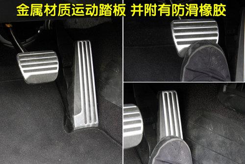 G37敞篷版車(chē)型為突出其運(yùn)動(dòng)風(fēng)格,所以離合、油門(mén)、剎車(chē)踏板外部由金屬包裹,并帶有防滑膠粒,各踏板操作行程適中、輕便。