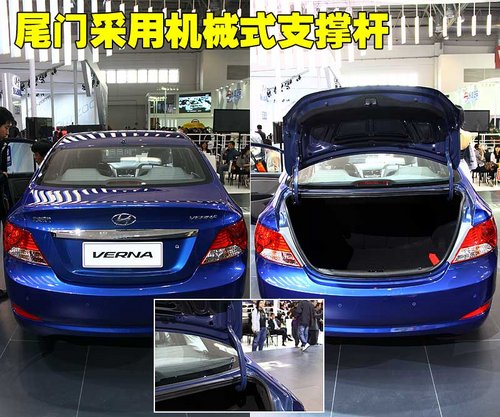 北京現(xiàn)代Verna的后行李廂開啟比較便捷,而尾門外部開啟可使用鑰匙實(shí)現(xiàn)操控,機(jī)械支撐桿設(shè)計(jì)開啟使很輕松。