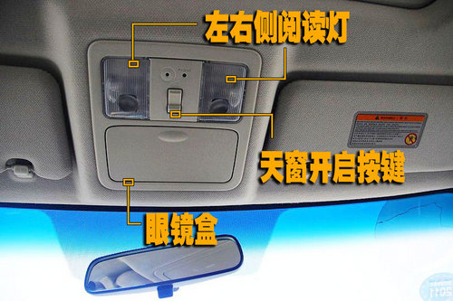 東風(fēng)日產(chǎn)新軒逸兩側(cè)遮陽板之間為駕駛席和副駕駛席分別提供了獨立式的閱讀燈,方便車主與乘員在夜間查看地圖等。閱讀燈前側(cè)配有眼鏡盒。
