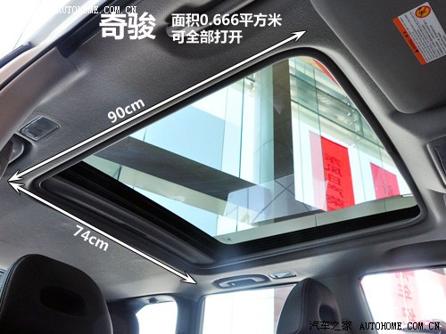 準(zhǔn)確地說(shuō),奇駿的天窗應(yīng)該叫大天窗,它的面積遠(yuǎn)超過(guò)一般意義上的普通天窗,但是距離全景天窗應(yīng)該說(shuō)還是有差距的。不過(guò),經(jīng)過(guò)實(shí)際測(cè)量,奇駿的天窗面積雖然跟其他全景天窗或雙天窗相比要小一點(diǎn),但是它實(shí)際可以打開(kāi)的面積卻是最大的?梢哉f(shuō),奇駿的整個(gè)天窗幾乎都是可以打開(kāi)的。