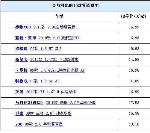 汽車之家的年度大戲又開鑼了!經(jīng)過兩個多月的精心策劃和準(zhǔn)備,我們組織了這次大型的緊湊型車全面對比!我們的目標(biāo)是將市場上主流的緊湊型車一網(wǎng)打盡,來一次從里到外、從靜到動的全面PK。這次一共邀請到了以下十款車型,他們款型相對都比較新,消費者在選車的時候經(jīng)常徘徊其中。從今天開始,我們將分別從外觀與做工、內(nèi)飾與空調(diào)、儲物空間、乘坐空間等四個靜態(tài)方面和動力與操控性能、燃油經(jīng)濟(jì)性等兩個動態(tài)方面以及保養(yǎng)售價等對這十款車進(jìn)行全面的對比。
