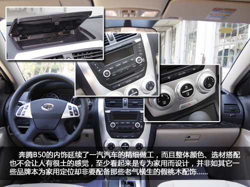 正如開(kāi)始說(shuō)的,一汽汽車(chē)制造真的是一個(gè)噱頭,因?yàn)橐黄銎返霓I車(chē)一般做工都非常精細(xì),這是絕大部分一汽汽車(chē)用戶所承認(rèn)的,而且畢竟是一款更趨向于年輕人的緊湊型轎車(chē),所以B50并沒(méi)有使用桃木內(nèi)飾裝扮,配合鍍鉻的配飾,其內(nèi)部看起來(lái)更加的年輕。