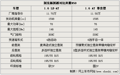 別克新凱越現(xiàn)在縮小了產(chǎn)品線,留下兩款搭載1.6L的發(fā)動(dòng)機(jī)車型。這款1.6L發(fā)動(dòng)機(jī)最大輸出功率為78kw,最大輸出扭矩為146Nm,比起奔騰B50車型的1.6L發(fā)動(dòng)機(jī)在功率上多出了2Kw,扭矩超出1Nm,再加上奔騰B50比新凱越多出的25Kg的車重,動(dòng)力方面稍顯弱勢(shì)。懸架部分奔騰B50優(yōu)勢(shì)明顯,前懸架雙橫臂式獨(dú)立前懸架帶橫向穩(wěn)定桿、后懸架E型多連桿式獨(dú)立后懸架帶橫向穩(wěn)定桿,對(duì)車身在過彎的是支撐更顯運(yùn)動(dòng)感覺,而經(jīng)過通用細(xì)心調(diào)教的新凱越則是以前懸架麥弗遜式獨(dú)立式、多連桿獨(dú)立后懸架的配合突出舒適感受。