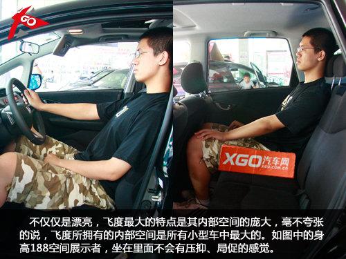 還是那個個性的大個子,身高188cm的他在飛度的前排或者后排都不會有任何擁擠的感覺,這就是飛度的最大的優(yōu)勢,最大的車內可使用空間,而且其內部可使用空間甚至比一些空間比較大的緊湊型轎車還要大,而且其頭部空間……你能看到有任何局促感?