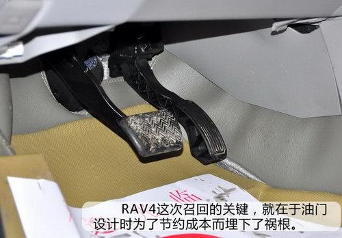 RAV4的油門踏板問題還未完全解決:援引天津一汽豐田的官方說法:“問題車輛由于加速踏板的踏板臂和摩擦桿的滑動面經(jīng)過長時間使用,在低溫的條件下使用暖風(fēng)(A/C除外)時,會在滑動面發(fā)生結(jié)露,使摩擦增大,使用加速踏板時有阻滯,可能影響車輛的加減速。極端情況下,加速踏板松開時會發(fā)生卡滯,車輛不能及時減速,影響行車安全!