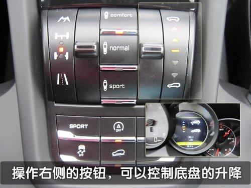 而根據(jù)駕駛者的不同駕駛風格以及路況的不同,新卡宴沿用了老卡宴的充氣懸架系統(tǒng)能夠在較低和較高的離地間隙中進行調(diào)節(jié)。此時操作充氣懸架的工作需要駕駛者手動完成,在變速器桿的下方非常明顯的位置是控制車輛4驅(qū)狀態(tài)和懸架高低的部分。調(diào)節(jié)的時候車輛的儀表盤也會做出相應的提示。