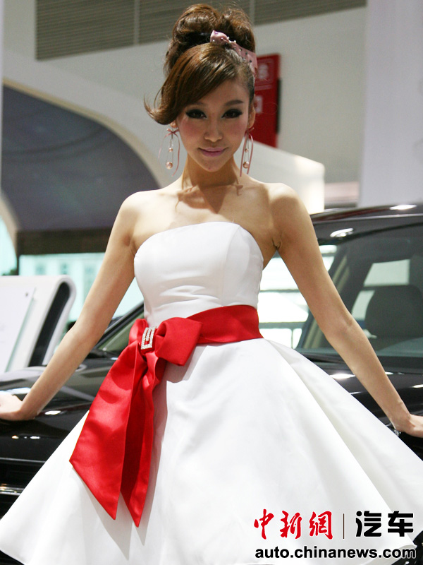 北京車展群芳競(jìng)艷:靚模一襲白裙秀香肩