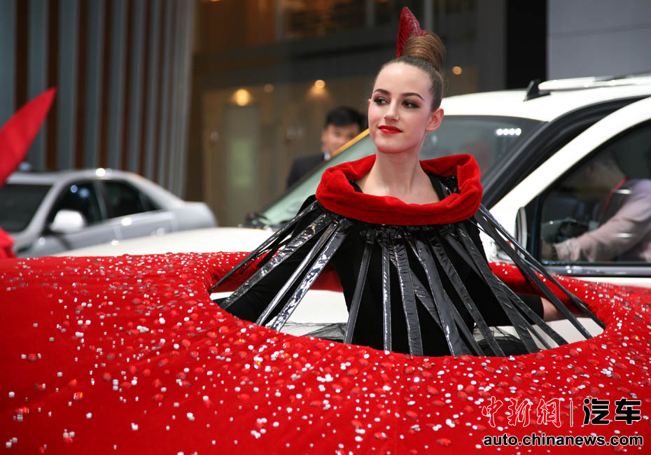 “第十一屆北京國際車展”是名車新品搶先亮相的舞臺(tái),也成了車模們爭(zhēng)奇斗艷的場(chǎng)所,參觀者在車展中可以享受兩道視覺大餐。王崢 攝