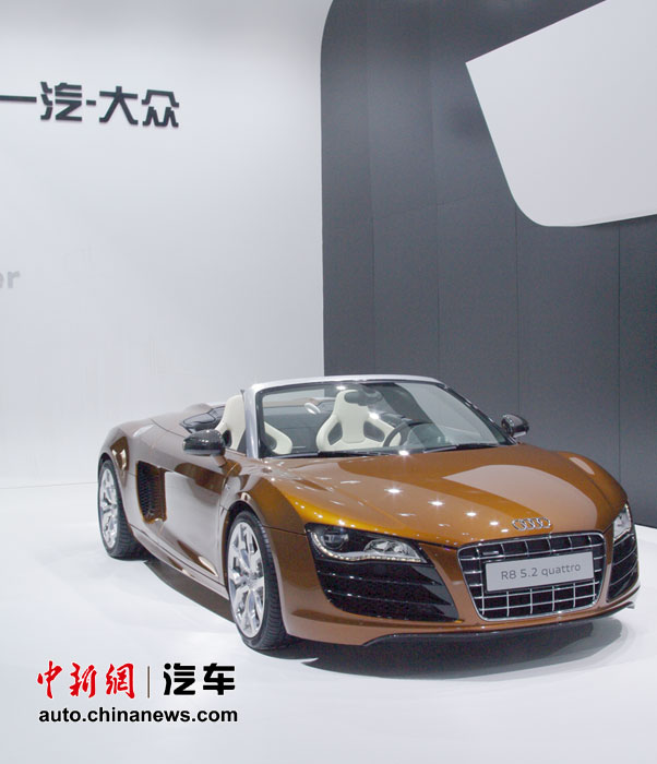 在人流如織的海外汽車(chē)巨頭的展館里,天價(jià)豪車(chē)成了當(dāng)仁不讓的最搶眼明星,相形之下即使再靚麗的車(chē)模也黯然失色。圖為奧迪 R8 5.2 Quattro