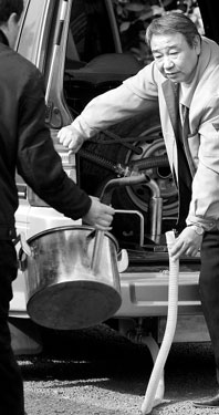 昨日上午,早報記者跟隨質(zhì)監(jiān)部門對寶安公路顧村鎮(zhèn)一家民營加油站、鎮(zhèn)寧路一家中石油加油站進行暗訪。