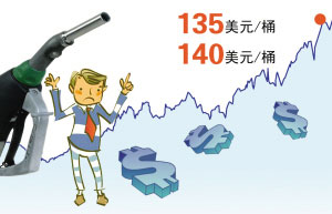 自去年8月美國(guó)次貸危機(jī)全面爆發(fā)以來(lái),受美元走軟的影響,國(guó)際油價(jià)就從當(dāng)時(shí)的80美元左右一路漲至上周五的135美元,最高還曾創(chuàng)下近140美元的歷史紀(jì)錄。石油不僅是國(guó)民經(jīng)濟(jì)發(fā)展急需“液體黃金”,也與老百姓生活息息相關(guān)。盡管?chē)?guó)際油價(jià)在節(jié)節(jié)上漲,但目前國(guó)內(nèi)成品油價(jià)格受政府管制還“隔岸觀火”——處在國(guó)際油價(jià)70美元左右的水平,國(guó)內(nèi)企業(yè)、老百姓在政府的保護(hù)下,免遭高油價(jià)之苦。上周公布的國(guó)內(nèi)5月份CPI盡管達(dá)到7.7%,遠(yuǎn)高于今年中央制定的4.8%的通貨膨脹目標(biāo),如果國(guó)內(nèi)成品油價(jià)格跟國(guó)際接軌,CPI數(shù)據(jù)肯定還要高很多。但是不斷沖高的國(guó)際油價(jià)對(duì)中國(guó)能源價(jià)格改革帶來(lái)了巨大壓力。發(fā)改委負(fù)責(zé)人6月8日曾表示,中國(guó)將暫緩成品油改革以“穩(wěn)定社會(huì)經(jīng)濟(jì)”。但6月11日官方公布的數(shù)據(jù)卻表明,煤價(jià)和油價(jià)的上漲是推動(dòng)5月份生產(chǎn)價(jià)格指數(shù)(PPI)創(chuàng)新高的主要?jiǎng)恿χ,而PPI的上漲最終還是會(huì)傳導(dǎo)至CPI上。
