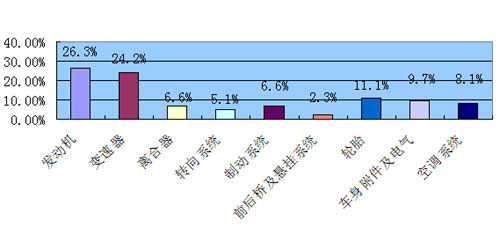 引發(fā)汽車用戶投訴的質(zhì)量問題構(gòu)成比率