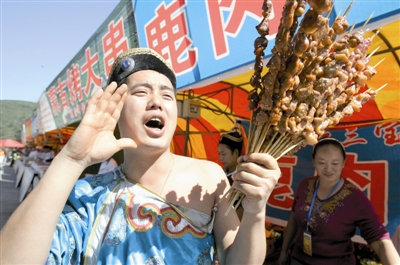 。牭轿魃桨舜筇幱瓮娴挠慰鸵馔獍l(fā)現(xiàn),許多在城里才能吃到的老北京小吃在這里也能吃到了。爆肚、灌腸、炒肝……30余種風(fēng)味小吃齊齊亮相,并一直持續(xù)到10月7日。