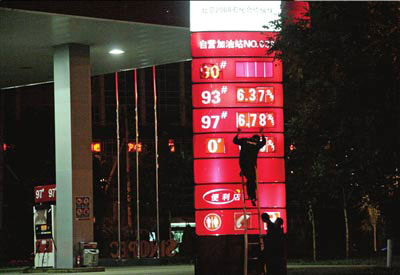 今天零時(shí)左右,望京一加油站工作人員在更換價(jià)牌
