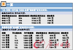 業(yè)內(nèi)預(yù)測(cè),國(guó)家開(kāi)征燃油稅后稅率將在30%~50%之間。以該車(chē)主的1.8L排量車(chē)型計(jì)算,假設(shè)一年行駛里程為15000公里左右,平均油耗為8.5升/百公里左右,每年需加1275升油。按照目前廣州93號(hào)油零售價(jià)每升6.25元計(jì)算,車(chē)主每年在油費(fèi)上需要支出7968.75元,加上養(yǎng)路費(fèi)1000元,目前每年這部分的總花費(fèi)為8968.75元。