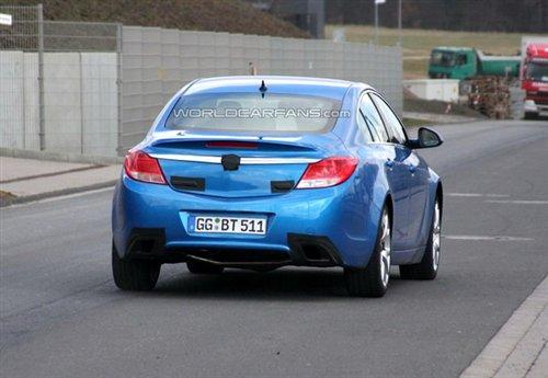 近日,一輛藍(lán)色的歐寶Insignia測試車曝光,從前保險(xiǎn)杠上厚厚的偽裝和尾部排氣管菱形造型上可以看出,該車就是即將發(fā)布的高性能Insignia OPC車。