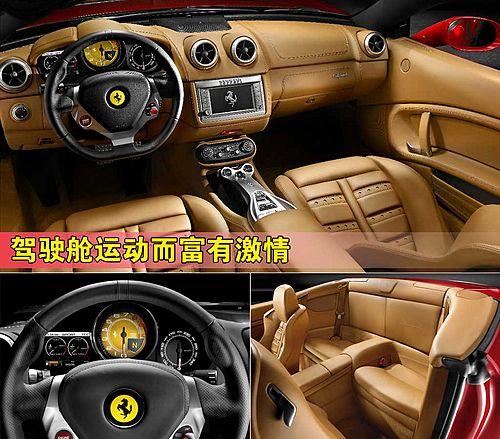 法拉利California座艙不僅繼承了法拉利跑車的經(jīng)典時尚造型,更由法拉利技藝精湛的工匠采用品質(zhì)卓越的材料打造出優(yōu)美流暢的外形。座椅、方向盤、儀表盤、娛樂系統(tǒng)以及優(yōu)化的空氣動力學(xué)設(shè)計等汽車配件及設(shè)備,確保法拉利Carlifornia符合人體工程學(xué)原理,無論車頂是否打開,都給人以愉悅的駕駛感受。
