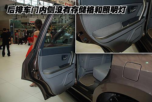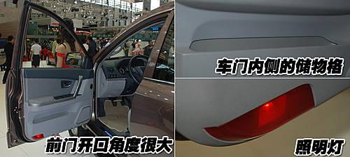 瑞麒X5的前排車門開口角度很大,可以方便駕駛員及乘員方便的進出車輛。前排車門內(nèi)側(cè)設(shè)計了儲物格,可以存放一些小件隨身物品。而且前排車門內(nèi)側(cè)還帶有照明燈,人性化配備非常周到。
