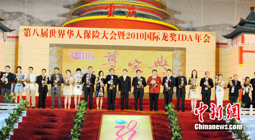 中新網(wǎng)重慶8月6日電 (連肖)6日晚,華人保險(xiǎn)業(yè)最高榮譽(yù)——2010年國(guó)際龍獎(jiǎng)IDA頒獎(jiǎng)儀式在重慶舉行,近兩千保險(xiǎn)界華人獲獎(jiǎng),932位獲獎(jiǎng)?wù)邅?lái)渝登臺(tái)領(lǐng)獎(jiǎng)。