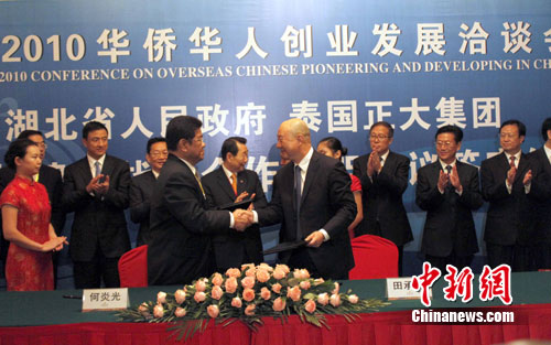 為加強湖北省與正大集團合作,擴大湖北省僑商企業(yè)的國際影響,湖北省僑商協(xié)會15日還聘請謝國民擔(dān)任湖北省僑商協(xié)會永久名譽會長。(完)