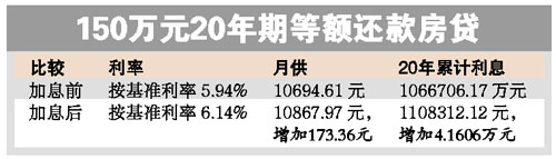 貸款利率上調(diào),也令貸款企業(yè)和貸款買房買車的市民貸款成本上升。不過,由于銀行對首套房貸實行優(yōu)惠利率,對于能獲取下浮利率的首套房貸客戶而言,此次加息帶來的實際影響將比加息幅度要小。以此前獲七折優(yōu)惠利率的房貸客戶為例,打完折后,其承擔(dān)的實際利率,將由此前的4.158%上調(diào)為4.298%,實際上調(diào)幅度只有0.14個百分點。