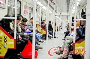 家住五山的陳伯昨日坐三號線轉(zhuǎn)一號線前往長壽路去約朋友喝茶,路上不但有乘客為他讓座,車內(nèi)也很寬松。