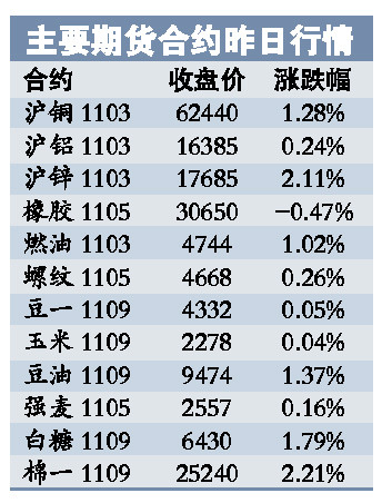截至收盤,鋅和棉花期貨漲幅都超過2%;銅、燃油、豆油白糖等品種漲幅超過1%,這在近期連續(xù)下跌的行情中頗為少見。