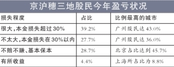 另有調(diào)查顯示,在今年的股市中,京滬穗三地受訪(fǎng)股民賠多于賺,2/3的股民有不同程度的損失,其中以廣州受訪(fǎng)股民損失最大。(記者敖曉波)