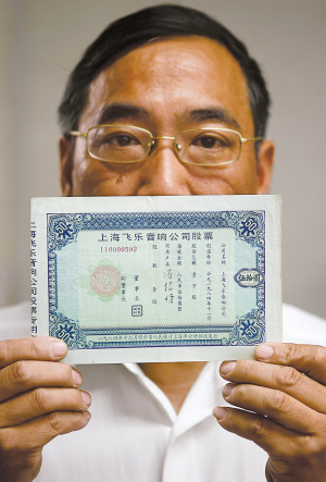2001年,盧工郵市第一次舉行股票實(shí)物展,因擁有“小飛樂(lè)”,我也去打探打探。參展的人一聽(tīng)我有“84版小飛樂(lè)”,紛紛圍上來(lái)問(wèn):“賣不賣?”價(jià)錢非常誘人,二至三萬(wàn)元。人的心理很怪,我原來(lái)也沒(méi)怎樣看重這張“小飛樂(lè)”,看到現(xiàn)在這么“受歡迎”,就不愿意賣了。于是,一直保存至今。