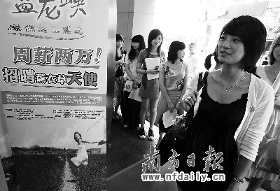 德慶盤龍峽2萬元周薪招聘“薰衣草天使”活動進(jìn)入了現(xiàn)場招聘環(huán)節(jié)。記者昨日在招聘現(xiàn)場看到,應(yīng)聘人需先填寫報名表格經(jīng)過第一關(guān)面試,過關(guān)后進(jìn)入第二關(guān)———拍照,而第二關(guān)讓不少人笑稱為“選美比賽”。