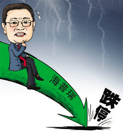 這一媒體奇觀正在海普瑞及其實際控制人李鋰家族身上上演。昨日,A股史上最貴發(fā)行、上市首日一度登頂兩市第一高價股的海普瑞繼前日跌停后再度跌停,并一舉跌破發(fā)行價148元;其實際控制人李鋰夫婦財富隨之蒸發(fā)近百億元,和2009年內地福布斯首富王傳福的396億元僅一步之遙,首富寶座岌岌可危。