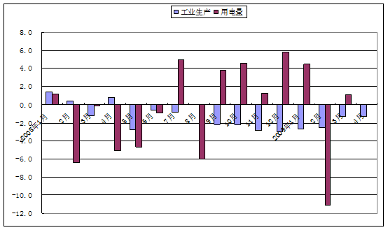 工業(yè)生產(chǎn)增長與用電量增長不一致。去年6月份和7月份,美國工業(yè)生產(chǎn)同比分別下降0.1%和0.7%,而發(fā)電量同比卻分別增長2.7%和2.3%;5月份工業(yè)生產(chǎn)增長0.2%,而發(fā)電量卻下降1.7%。今年1月份和3月份,歐元區(qū)工業(yè)生產(chǎn)環(huán)比分別下降2.7%和1.3%,而用電量環(huán)比分別增長4.1%和1.1%;2008年的12個月份中,工業(yè)生產(chǎn)環(huán)比變化與用電量變化方向不一致的月份有8個之多。去年7月至9月,日本工業(yè)生產(chǎn)同比分別下降0.2%、5.7%和4%,而用電量卻分別增長6.5%、0%和0.6%。
